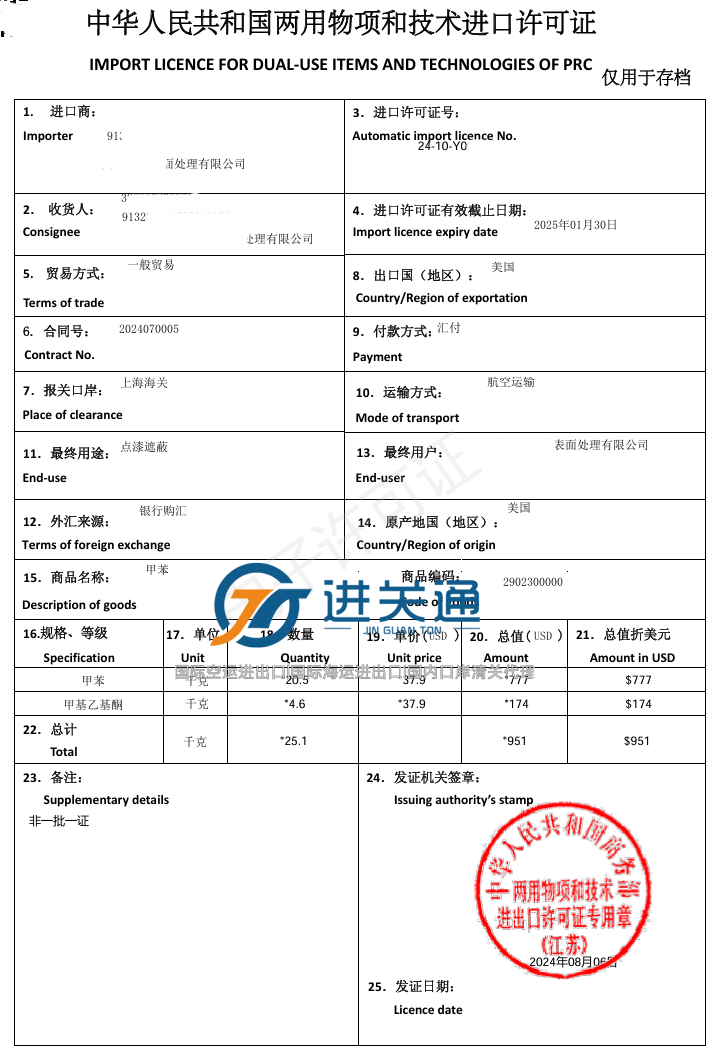 代办两用物项和技术进口许可证--进关通&进口单证办理